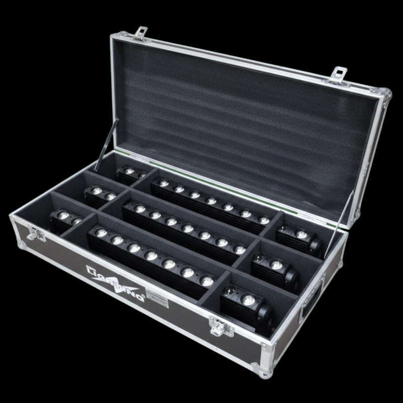 Los LED se pueden controlar individualmente en tres secciones RGB, lo que permite la gestión creativa de los efectos de iluminación y la creación de espectáculos de luz dinámicos. El sistema admite 5 modos DMX, ofreciendo flexibilidad tanto para configuraciones simples como para programaciones más avanzadas dentro de configuraciones profesionales.